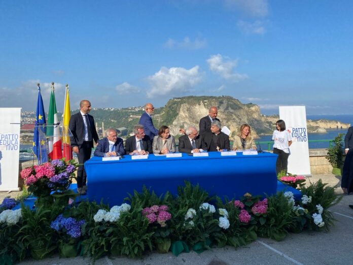 A procedere alla firma del Patto, avvenuta sul promontorio di Nisida, nel cortile antistante l’istituto penale minorile, ci sono anche il sindaco di Napoli Gaetano Manfredi, l’assessore all’Istruzione della Campania Lucia Fortini, il Prefetto Claudio Palomba, l’Arcivescovo Metropolita Don Mimmo Battaglia (che è stato tra i primi a invocare un’intesa di questo spessore), il portavoce del Forum Terzo Settore Campania Giovanpaolo Gaudino e il presidente dell’Impresa Sociale “Con i bambini”, Marco Rossi Doria.