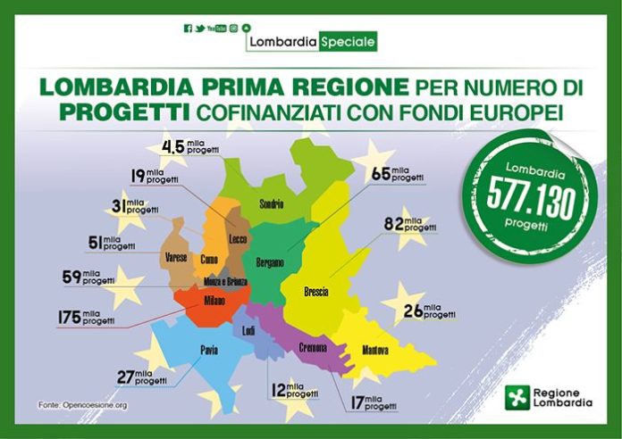 La Lombardia si conferma leader nazionale per numero di progetti cofinanziati con fondi europei, posizionandosi nettamente al primo posto con 577.130 progetti monitorati. Seguono Toscana e Puglia, rispettivamente con 165.970 e 113.257. Al quarto posto il Friuli Venezia Giulia con 68.853 e poi Campania e Sicilia, entrambe con poco piu’ di 65.000 progetti. A questo tema e’ dedicato l’approfondimento settimanale di #LombardiaSpeciale pubblicato sul sito www.lombardiaspeciale.regione.lombardia.it