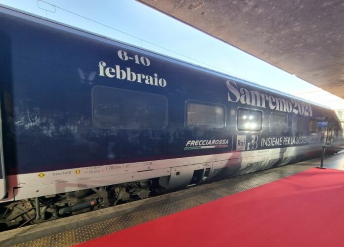 ROMA (ITALPRESS) – E’ partito da Roma Termini un Frecciarossa con livrea dedicata a Sanremo, che accompagnerà giornalisti e dipendenti Rai nella città ligure per partecipare alla manifestazione canora più celebre d’Italia. Alla partenza del treno charter erano presenti, tra gli altri, Luigi Corradi, Ad e direttore generale di Trenitalia e Giampaolo Rossi, direttore generale della Rai. A bordo del treno anche le conduttrici di Rai Radio 2, Ema Stokholma e Andrea Delogu. Una partnership, quella tra Frecciarossa, il treno alta velocità di Trenitalia e Rai siglata sotto l’insegna della sostenibilità e con protagonista il treno. Il Frecciarossa 1000, infatti, è il primo treno AV al mondo ad avere ottenuto la certificazione di impatto ambientale (EPD) basata su un’attenta analisi del ciclo di vita. Ogni dettaglio, dalle leghe leggere di cui è composto, fino ai nuovi motori elettrici che lo spingono, è stato progettato per ridurre al minimo il consumo di energia: fino al 30% in meno rispetto ai treni AV della precedente generazione. L’attenzione alla sostenibilità non si limita alla riduzione dei consumi ma tiene conto anche della riciclabilità dei materiali di cui è costituito, che raggiunge il 94% al termine del ciclo di vita del treno. Con questa partnership, Rai si unisce alle 47mila aziende che l’anno scorso hanno scelto di viaggiare con Trenitalia. Nei prossimi giorni, il Frecciarossa livreato per Sanremo viaggerà sulla rete Alta Velocità per tutta la durata del Festival, per poi ripartire da Sanremo l’11 febbraio alla volta di Roma. Trenitalia ribadisce così il suo impegno nel muovere le persone e connetterle alla cultura, nel pieno rispetto della sostenibilità ambientale e della promozione turistica.