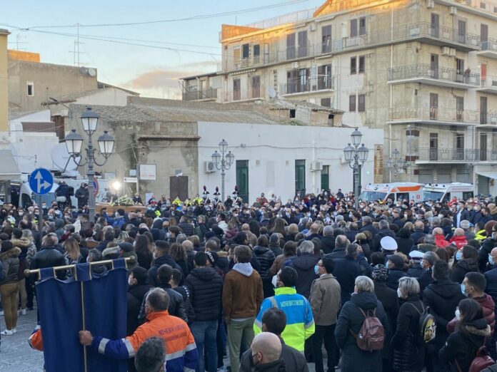 Imponente la partecipazione della cittadina, dei vigili del fuoco, dei volontari e degli uomini della protezione civile ai funerali delle nove vittime dell’esplosione verificatasi in Via Trilussa, a Ravanusa, sabato scorso. La messa viene celebrata dal vescovo di Agrigento, monsignor Alessandro Damiano, che ha ricevuto il telegramma di incarico del Papa.