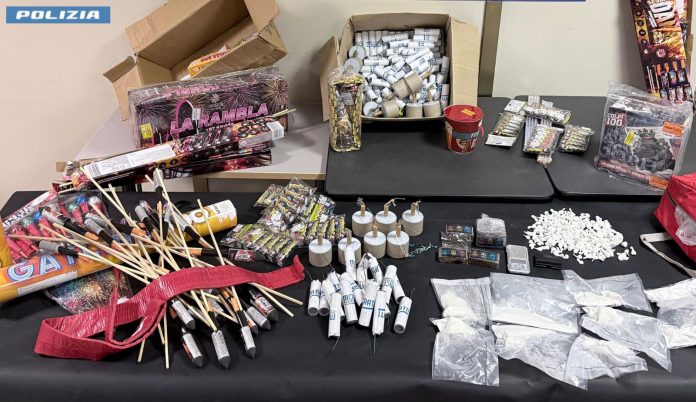 Il blitz ha portato al sequestro di circa di 2 chili di sostanza stupefacente – tra hashish e cocaina – detenuta da un quarantatreenne romano all’interno della abitazione intestata alla compagna. Nel corso della perquisizione, estesa anche alla cantina adiacente, gli accertamenti hanno fatto emergere un pericoloso filo conduttore tra droga ed esplosivi. Nel box, infatti, erano custodie numerose scatole da imballaggio contenenti materiale pirotecnico, in parte occultato insieme alla cocaina.