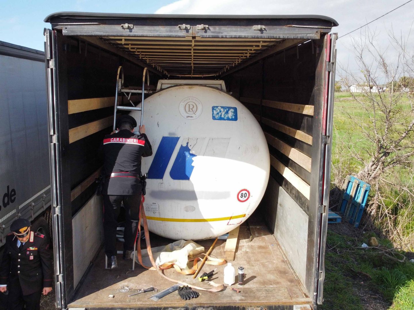 Tramite una canalizzazione realizzata con un tubo minerario per alta pressione, fatto transitare sottotraccia per ben 1 chilometro e 300 metri, il cherosene veniva aspirato e fatto confluire all’interno di una grande cisterna da 15.000 litri. Per non destare sospetti, la cisterna era stata abilmente occultata all’interno del rimorchio telato di un autoarticolato con targa polacca.