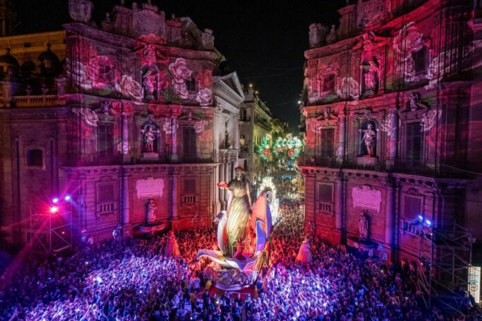PALERMO (ITALPRESS) – Il Quattrocentesimo Festino di Santa Rosalia sul podio mondiale dei grandi eventi del 2024. Ieri sera si è svolta a Roma la finale del BEA World Grand Prix, la competizione di eventi internazionali alla quale hanno partecipato 460 tra le iniziative più importanti del mondo valutate da una commissione di esperti di fama internazionale. Il 400.mo Festino di Santa Rosalia è stato candidato dalla Balich Wonder Studio che lo ha prodotto insieme alla Odd Agency per il Comune di Palermo. Entrato subito in finalissima tra i primi 10 eventi, ieri sera il simbolo del Comune di Palermo è stato premiato con la medaglia d’argento per la sezione Cultura (preceduto dal festival multimediale dedicato alla pittura che ha coinvolto le principali città polacche e davanti alla Turandot messa in scena alla Scala per il centenario di Puccini) e con quella di bronzo nella classifica generale, dopo la campagna di Corona sulle Olimpiadi di Parigi 2024 e Amerigo Vespucci World Tour 2023-2025.