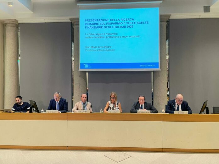 MILANO (ITALPRESS) – Intesa Sanpaolo e Centro Einaudi hanno presentato l‘Indagine sul Risparmio e sulle scelte finanziarie degli italiani 2025. Alla presentazione hanno preso parte Gian Maria Gros-Pietro (Presidente di Intesa Sanpaolo), Gregorio De Felice (Chief Economist della Banca), Giuseppe Lavazza e Giuseppe Russo (rispettivamente, Presidente e Direttore del Centro Einaudi). La ricerca, condotta su un campione di circa 1.500 intervistati, analizza le dinamiche degli investimenti finanziari delle famiglie italiane e ne mette in luce i comportamenti e le opinioni.