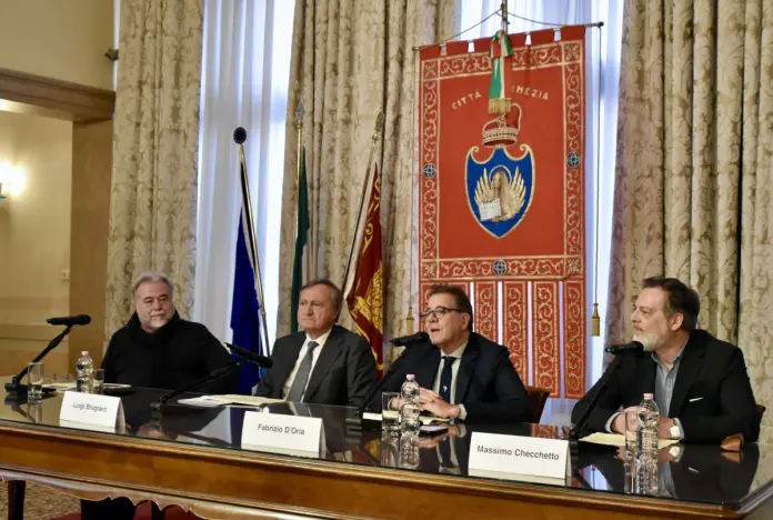 Il calendario degli appuntamenti del Carnevale di Venezia 2026 è stato presentato questa mattina a Ca’ Farsetti dal sindaco di Venezia Luigi Brugnaro, dal consigliere delegato alla Tutela delle Tradizioni Giovanni Giusto, dal direttore artistico del Carnevale Massimo Checchetto e dal direttore generale di Vela spa, Fabrizio D’Oria.