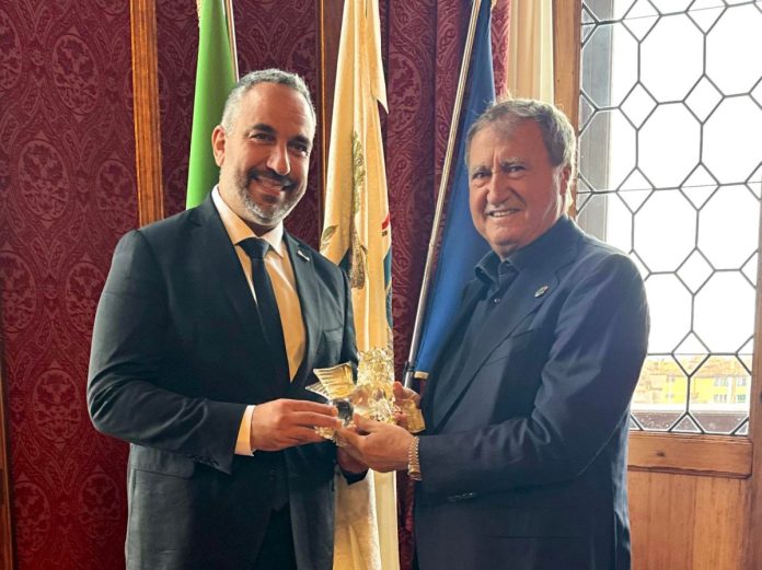 VENEZIA (ITALPRESS) – Questa mattina a Ca’ Corner, sede della Città metropolitana di Venezia, il sindaco Luigi Brugnaro ha ricevuto il primo cittadino di Betlemme Maher Nicola Canawati, reduce dalla visita nei giorni scorsi in Vaticano dove ha incontrato Papa Leone XIV.