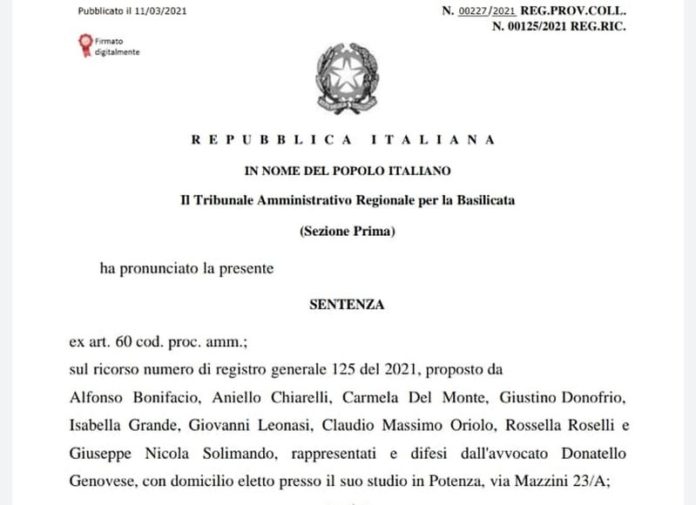 POTENZA (ITALPRESS) – Il Tar della Basilicata ha respinto il ricorso contro la zona rossa in Basilicata, nello specifico contro l’ordinanza emessa dal ministro della Salute, Roberto Speranza, il 27 febbraio scorso. La sentenza del Tar evidenzia che i presupposti per l’istituzione della zona rossa in Basilicata lo scorso primo marzo c’erano e che è comunque impossibile differenziare una zona al suo interno. La Basilicata quindi resta rossa, per il Tar a fronte dei dati epidemiologici il ministro della Salute non poteva esimersi dall’istituirla.