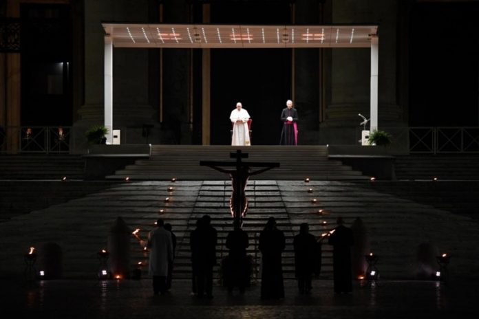 In una piazza S.Pietro vuota la Via Crucis in nome di medici e detenuti