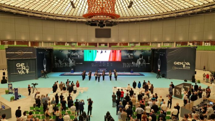 GENOVA (ITALPRESS) – Hanno preso ufficialmente il via, con la cerimonia inaugurale al Palasport di Genova, i campionati europei di scherma che proseguiranno nel capoluogo ligure fino a venerdì 20 giugno. Presenti tra gli altri il presidente della Confederazione europea di scherma Pascal Tesch, il presidente della Federazione italiana scherma Luigi Mazzone, il presidente del comitato organizzatore Beppe Costa, il presidente della Regione Liguria Marco Bucci e la sindaca di Genova Silvia Salis. A impreziosire la cerimonia le performance della compagnia Kataklò davanti a centinaia di spettatori.
