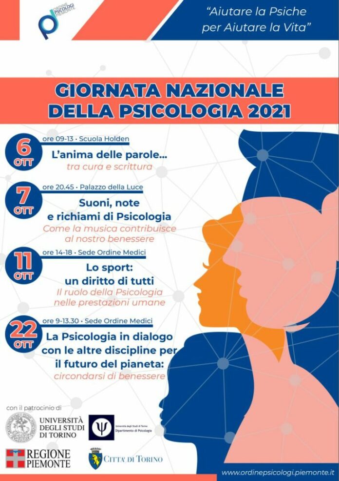 In occasione della VI Edizione della Giornata Nazionale della Psicologia, ideata e promossa dal Consiglio Nazionale dell’Ordine degli Psicologi (CNOP), che ricorre il prossimo 10 ottobre, l’Ordine degli Psicologi del Piemonte (OPP) presenta un programma dettagliato per affrontare il tema scelto per questa occasione: “Aiutare la Psiche per Aiutare la Vita”. L’obiettivo di questa tematica è quello di valorizzare il ruolo della psicologia nel contesto del più ampio benessere degli individui e delle comunità, sottolineando, in particolare, come il benessere psicologico sia un fattore imprescindibile di tutela e arricchimento della qualità della vita. La salute individuale deve obbligatoriamente passare anche attraverso una cura e un’attenzione precisa verso il benessere psicologico. Non esiste benessere senza benessere psicologico: è un concetto, alcune volte e in alcuni ambiti, ancora difficile da trasmettere. Le proposte che emergeranno in queste giornate diventano particolarmente cruciali e attuali se collocate in uno scenario nazionale e internazionale ancora obbligato a fare i conti con i postumi di un’emergenza sanitaria che ha cambiato il modo in cui le persone si rapportano con sé stesse, tra loro, col mondo esterno e col pianeta. Per questi motivi, l’importanza del lavoro psicologico si rileva oggi, quindi, ancora più significativa. Con il patrocinio della Regione Piemonte, della Città di Torino, dell’Università degli Studi di Torino e del Dipartimento di Psicologia dell’Università degli Studi di Torino, è stato ideato un percorso ricco di iniziative, rivolto a tutte le generazioni e realtà sociali del territorio. Con esperti di particolare rilevanza verranno affrontati alcuni temi cardine: la scrittura, la musica, lo sport e l’attenzione verso l’ambiente.