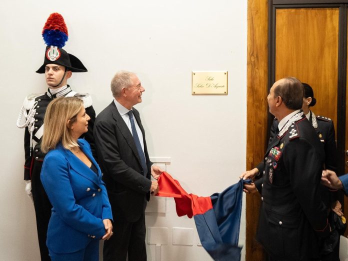 ROMA (ITALPRESS) – Presso la Sala degli Arazzi di Palazzo Piacentini si è tenuta la cerimonia di intitolazione di un’aula della sede del ministero delle Imprese e del Made in Italy al Vicebrigadiere Salvo D’Acquisto, medaglia d’oro al valor militare, che in questo storico palazzo prestò servizio e di cui oggi ricorre l’anniversario della nascita. Alla cerimonia sono intervenuti il ministro Adolfo Urso, il sottosegretario di Stato Fausta Bergamotto e il generale di Corpo d’Armata Salvatore Luongo, comandante generale dell’Arma dei Carabinieri.