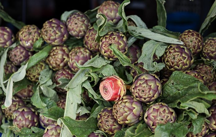 LADISPOLI (XINHUA/ITALPRESS) – Carciofi in mostra durante la sagra del carciofo romanesco a Ladispoli, in Italia, il 10 aprile 2026. La festa annuale che celebra il raccolto del carciofo romanesco si è aperta venerdì.