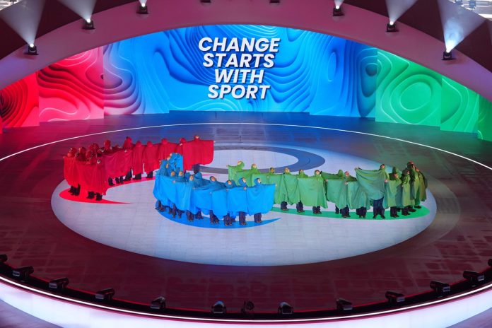 VERONA (XINHUA/ITALPRESS) – Attori si esibiscono durante la cerimonia di apertura dei Giochi paralimpici invernali Milano-Cortina 2026 all’Arena olimpica di Verona, a Verona, in Italia, il 6 marzo 2026.