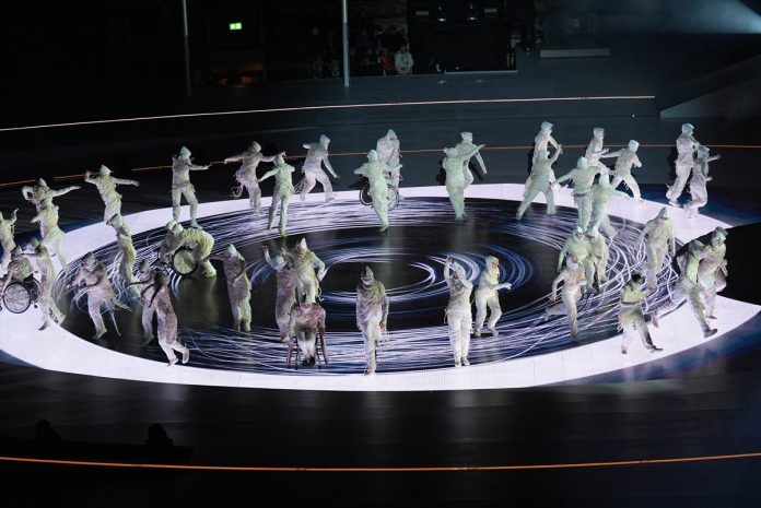 VERONA (XINHUA/ITALPRESS) – Attori si esibiscono durante la cerimonia di apertura dei Giochi paralimpici invernali Milano-Cortina 2026 all’Arena olimpica di Verona, a Verona, in Italia, il 6 marzo 2026.