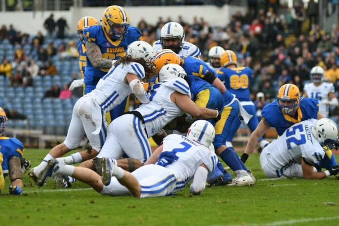 La Svezia parte in attacco, finisce il drive con un punt ma poi un pasticcio italiano restituisce la palla ai giallo-blu in piena red zone. La Svezia non si lascia sfuggire l’occasione e va in touchdown con Filip Wetterberg su imbeccata di Juhlin, per poi trasformare da due punti con Filip Jònsson: 34-8. A 8 minuti dalla fine della partita, l’Italia segna ancora, dopo essere arrivata a ridosso della endzone grazie prima ad un gran passaggio di Zahradka su Alinovi, e poi alla corsa di Nick Diaco, partito in posizione di quarterback. Felli calcia tra i pali e l’Italia è sul 41-8. La Svezia risponde con un TD pass di Juhlin su Mattias Gauthier, quando mancano meno di 4 minuti. Il tentativo di conversione non riesce: 41-14 il finale. La Nazionale italiana di football americano regala al nostro Paese l’ennesima gioia di questo straordinario 2021 e si laurea Campione d’Europa per la terza volta nella sua storia, qualificandosi al contempo automaticamente per i Campionati del Mondo dell’anno prossimo.