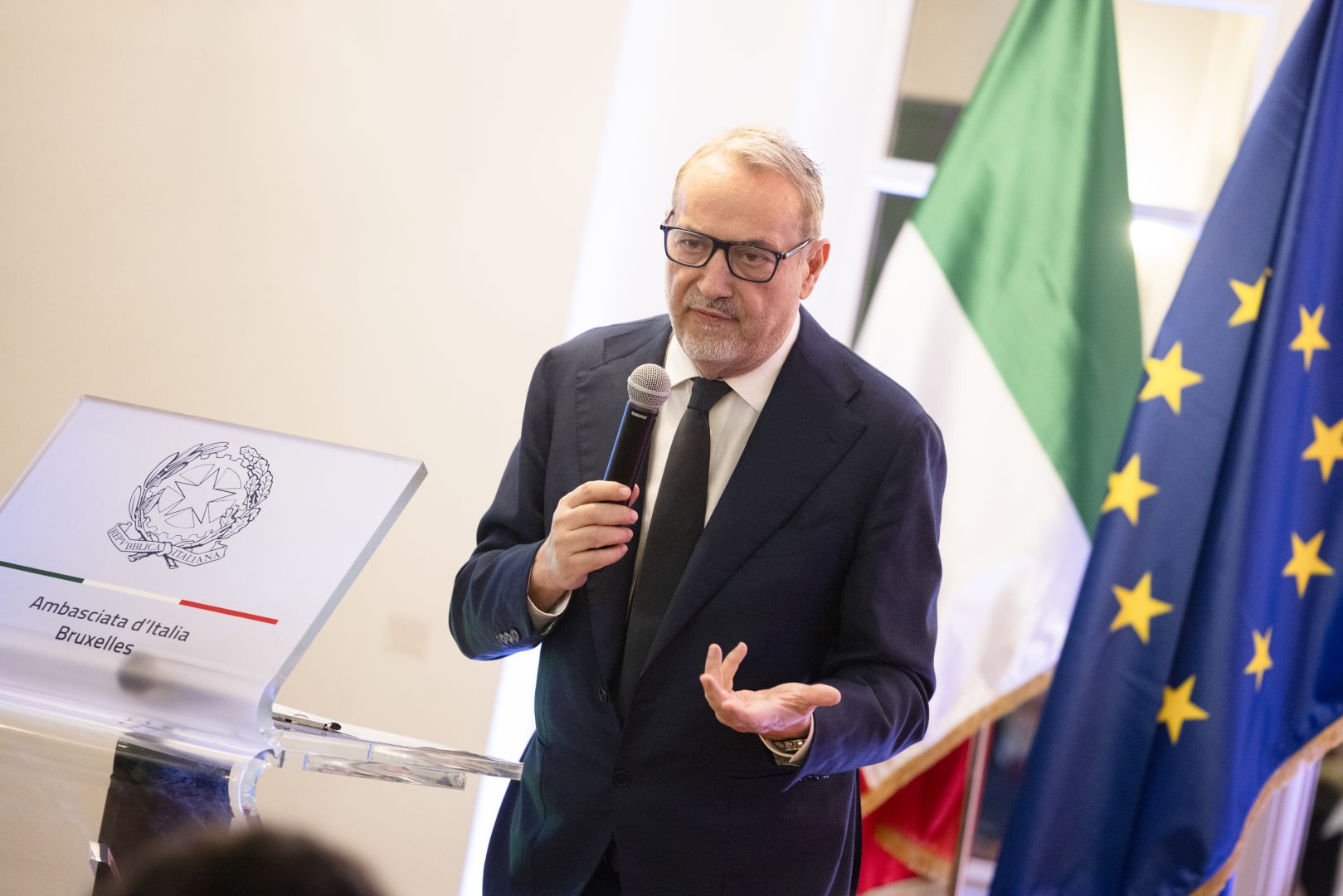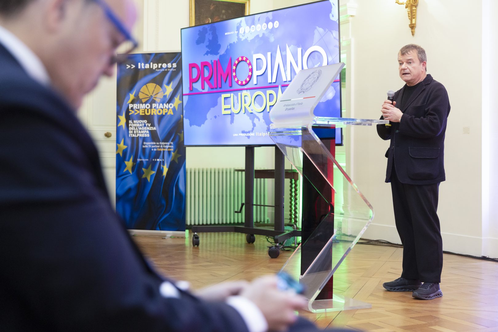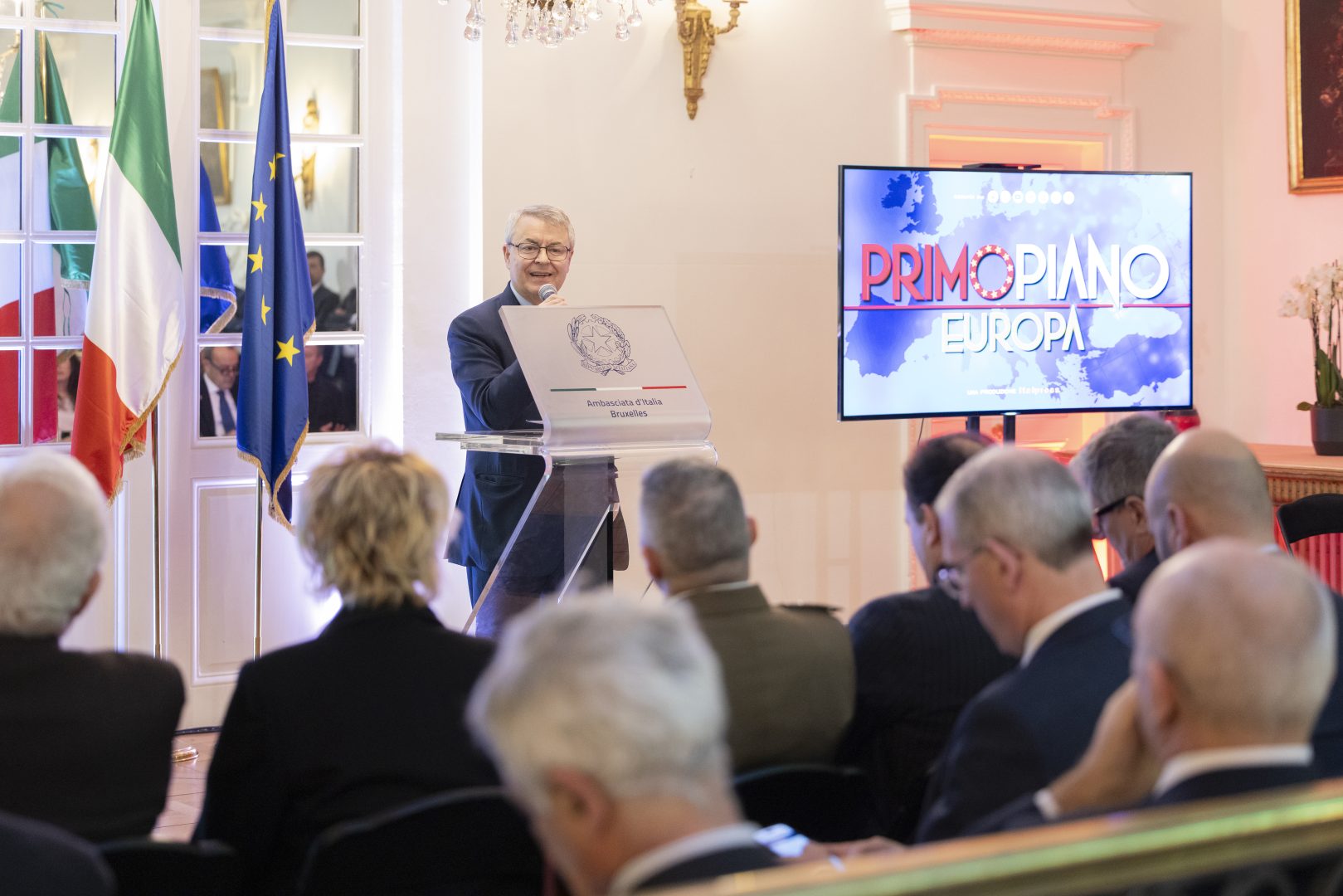 “La scelta di presentare Primo Piano Europa in Residenza dell’Ambasciata ha anche un valore simbolico: le istituzioni, la diplomazia e l’informazione hanno oggi più che mai bisogno di assicurare la trasparenza e il dialogo, al servizio dei cittadini e della pace. Non a caso registriamo qui la presenza del Sottosegretario all’Editoria, il senatore Alberto Barachini, giunto appositamente da Roma per questo evento. Nell’era della disinformazione, dell’invasione della comunicazione, della disillusione rispetto al progetto europeo, Primo Piano Europa rappresenterà uno strumento prezioso a cui affidarsi per ricostruire la fiducia e rafforzare il dialogo”, ha detto l’ambasciatore italiano a Bruxelles, Federica Favi.