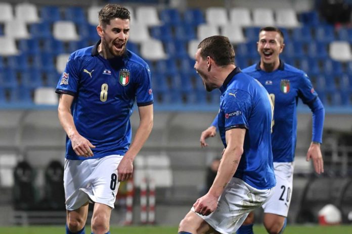 REGGIO EMILIA (ITALPRESS) – Nonostante le numerose assenze dettate da infortuni e contagi, l’Italia batte la Polonia per 2-0 grazie ai gol di Jorginho e Berardi e riconquista la vetta del gruppo 1 di Nations League a una giornata dalla fine della fase a gironi. La Nazionale di Roberto Mancini (ancora in isolamento, Evani ha guidato la squadra dalla panchina) si giocherà il pass per la fase finale del torneo contro la Bosnia cenerentola del gruppo. Sarà quindi unicamente nelle mani degli azzurri il destino di Donnarumma e compagni nella competizione. Un primo traguardo tutt’altro che scontato viste le indisponibilità di quasi venti giocatori nel giro della selezione azzurra, tra cui alcuni titolari come Chiellini, Bonucci, Immobile, Verratti, Pellegrini e Spinazzola. Al Mapei Stadium fino al duplice fischio dell’arbitro Turpin è un monologo azzurro e prima del vantaggio c’è spazio per due episodi da moviola: un gol giustamente annullato a Insigne per fuorigioco di Belotti e una gomitata di Lewandowski a Bastoni non sanzionata nemmeno col giallo. La rete dell’1-0 dell’Italia nasce su calcio di rigore: Krychowiak stende Belotti in area, il direttore di gara concede il penalty e dagli undici metri Jorginho non sbaglia. Nella ripresa è il nervosismo a fare da padrone. E al 65′ l’Italia recrimina ancora per un altro mancato rosso, questa volta al neo entrato Goralski per un intervento al limite su Belotti. Ma gli episodi non sono finiti: al 73′ il bomber del Torino ha la palla del ko e il suo tiro sbatte sul braccio di Bednarek in area, per l’arbitro però è tutto regolare. Al 77′ è invece il momento del secondo giallo per Goralski per un altro fallo su Belotti. Passano sei minuti e l’Italia ne approfitta: Insigne serve Berardi che rientra sul mancino e firma il definitivo 2-0 nel suo stadio.