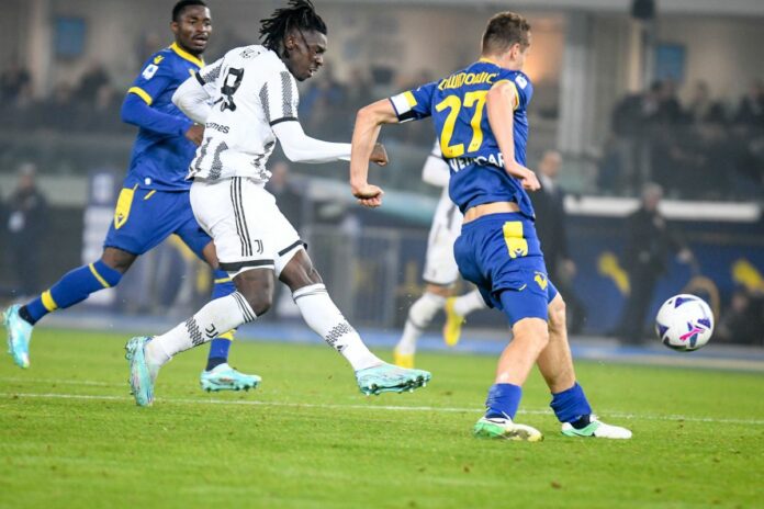 VERONA (ITALPRESS) – La Juventus soffre ma passa per 1-0 sul campo di un Verona che non riesce a portare a casa punti nonostante una prestazione nel complesso coraggiosa. A decidere la gara è un guizzo di Kean nella ripresa, al termine di un’azione avviata prima da Milik e poi da Rabiot. I gialloblù partono meglio e impensieriscono Perin al 3′ con un tiro dalla distanza di Sulemana che esce di poco. Dopo un avvio di marca scaligera, i bianconeri prendono campo alla distanza ma vanno al tiro per la prima volta solamente al 38′ con Locatelli, che ci prova dai 20 metri trovando, però, Montipò pronto alla parata in tuffo. Un primo tempo vivace ma quasi privo di emozioni si chiude a reti inviolate. Al 3′ della ripresa Dawidowicz ci prova in scivolata dopo aver raccolto una punizione dalla trequarti, ma non colpisce bene e la sfera termina alta. Al 12′ Rabiot si libera di prepotenza sulla destra e mette dentro una palla tesa sulla quale Kean manca l’impatto di un soffio. Il gol è nell’aria e arriva al 16′. Milik vede un grande corridoio per Rabiot, il francese serve Kean sul taglio che firma l’1-0 con il sinistro piegando le mani a Montipò con la complicità di una deviazione. Un quarto d’ora più tardi esplodono le proteste dei veneti quando Danilo tocca la palla di mano in area dopo un rimpallo, con arbitro e Var che non intervengono. Un episodio sul quale rimangono alcuni dubbi. Rigore che viene concesso al 38′, quando Bonucci sembra commettere fallo su Verdi in area. Questa volta, però, il Var richiama Di Bello alla verifica e l’arbitro cambia la decisione togliendo il penalty all’Hellas. In avvio di recupero, Henry lancia Lasagna nel corridoio che sfugge ad Alex Sandro, con quest’ultimo che lo stende al limite e viene espulso. La punizione di Verdi, però, non sortisce alcun effetto e gli ospiti resistono agli assalti finali degli uomini di Bocchetti, mettendo in cassaforte il risultato. La Juventus festeggia così 3 punti importanti che la catapultano al terzo posto, a due sole lunghezze di ritardo dal Milan secondo. Rimane invece critica la situazione del Verona, ancora ultimo a quota 5.