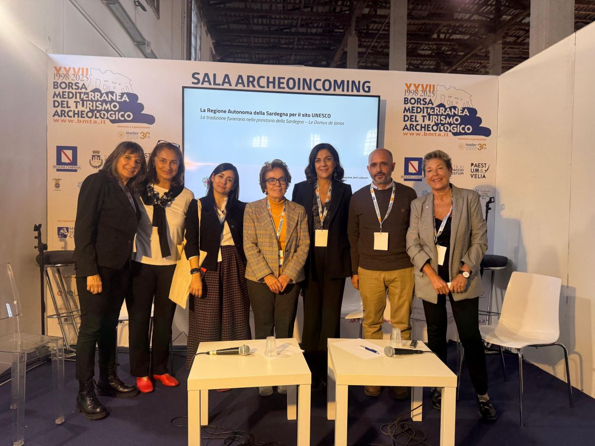 PAESTUM (ITALPRESS) – La Regione Autonoma della Sardegna (Assessorato della Pubblica istruzione, beni culturali, informazione, spettacolo e sport) in collaborazione con Il CeSim (Centro Studi Identità e Memorie della Sardegna) hanno partecipato alla XXVII edizione della Borsa Mediterranea del Turismo Archeologico (BMTA) di Paestum, dal 31 ottobre al 2 novembre 2025, con uno stand espositivo e una conferenza ufficiale dedicata al tema della valorizzazione delle domus de janas.
