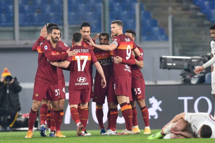 ROMA (ITALPRESS) – Per il Torino è ancora notte fonda. Nel posticipo della dodicesima giornata, all’Olimpico, i granata non riescono a risollevarsi dal complicato momento e incassano l’ottava sconfitta stagionale contro la Roma. I giallorossi, dopo la cinquina al Bologna, si impongono per 3-1 e agganciano la Juventus al terzo posto con i gol di Mkhitaryan, Veretout e Pellegrini. Una serata in discesa sin dal 14′ per gli uomini di Fonseca, in superiorità numerica grazie alla doppia ammonizione di Singo. Inutili le proteste degli ospiti all’indirizzo del direttore di gara Abisso di Palermo, che reclamano anche per un fallo su Belotti nell’azione che porta la Roma al vantaggio al 27′: Mancini anticipa il Gallo in maniera decisa ma giudicata regolare, Milinkovic-Savic (preferito a Sirigu) respinge ma sul pallone vagante la bordata di Mkhitaryan si insacca dopo aver colpito il palo interno. Non ci sono dubbi, invece, sul rigore concesso al tramonto del primo tempo: Belotti lancia involontariamente Dzeko con un retropassaggio, Bremer prova a metterci una pezza ma atterra il bosniaco in area e dal dischetto Veretout è infallibile. In un match apparentemente in cassaforte, la Roma abbassa ulteriormente il ritmo nella ripresa tuttavia al 64′ viene spaventata dall’incrocio dei pali di Edera. Un campanello d’allarme per i giallorossi mentre per il Toro piove sul bagnato, con episodi continuamente a sfavore e il colpo del ko che arriva tre minuti più tardi con Pellegrini, che infila sotto la traversa dopo una rapida ripartenza corale. Spalle al muro e con entrambi i piedi nella fossa, l’ultimo a mollare è sempre capitan Belotti: con la partecipazione di Pau Lopez e del pacchetto difensivo capitolino, il Gallo insacca in mischia e rende meno amaro lo score ma non può far sfuggire i granata dalla dura realtà con l’ultimo posto in classifica in compagnia del Crotone.
