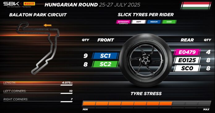 “Torniamo a correre in Ungheria a distanza di 35 anni per quello che rappresenta un bel ritorno nel calendario e un appuntamento importante per tutti gli appassionati del Centro Europa – sottolinea Giorgio Barbier, direttore Racing Moto Pirelli – Non abbiamo esperienza diretta su questa pista, ma alcuni piloti hanno già effettuato dei test e da quanto emerso le condizioni dell’asfalto non sembrano ottimali ma l’abrasività non appare particolarmente elevata. È vero però che i test sono stati effettuati con moto di serie, e bisognerà vedere come sarà l’asfalto con le moto da gara, più potenti e con configurazioni tecniche differenti. Proprio per mancanza di dati e informazioni certe su cui basarci, abbiamo deciso di approcciare questo round con cautela, portando ai piloti del WorldSBK diverse soluzioni posteriori a partire dalla soft SC0 di gamma che conoscono bene e che potranno quindi tenere come riferimento per poi passare alla E0125, che grazie alla nuova struttura potrebbe garantire prestazioni migliori. A Portimão ha riscosso un grande successo, tanto da diventare la più utilizzata del weekend, e pensiamo possa rivelarsi utile anche a Balaton. Abbiamo inserito anche l’extrasoft E0479, una soluzione che a Misano ha dato buoni riscontri in termini di feeling e prestazioni”.