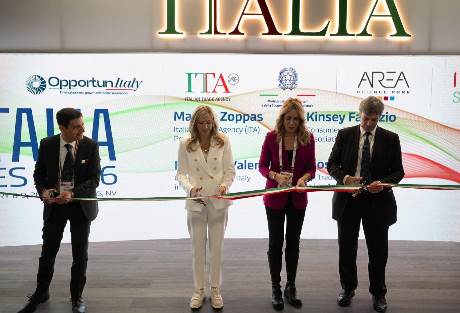 L’Arena Italia è il fulcro della presenza italiana al CES: un’area dedicata progettata per ospitare panel tematici, dibattiti e sessioni di pitching con i principali attori dell’ecosistema dell’innovazione e partner internazionali. Le attività nell’Arena hanno preso ufficialmente il via con il taglio del nastro, a cui hanno presenziato il presidente di Agenzia ICE Matteo Zoppas, assieme a Kinsey Fabrizio, presidente della Consumer Technology Association (che organizza il CES), alla Console Generale d’Italia a Los Angeles Raffaella Valentini e al Trade Commissioner dell’Ufficio ICE di Los Angeles Giosafat Riganò.