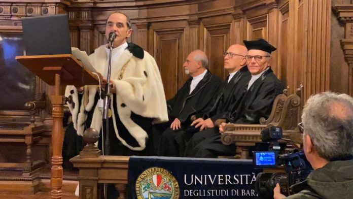 “L’iniziativa nasce da una collaborazione che ormai va avanti da anni e che è sicuramente meritoria e virtuosa per la nostra università. Lavorare nel territorio di Taranto, lavorare con la Marina è per noi un titolo di pregio”. Lo ha detto il rettore dell’Università degli Studi di Bari “Aldo Moro” Stefano Bronzini riferendosi alla laurea honoris causa in Conservazione e Restauro dei Beni Culturali che questo pomeriggio ha consegnato all’ammiraglio a riposo Francesco Ricci per l’opera di valorizzazione del castello Aragonese di Taranto