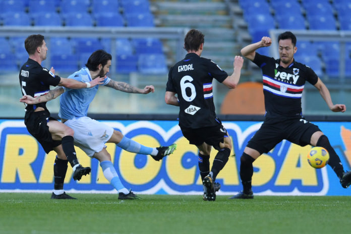 ROMA (ITALPRESS) – Basta la rete di Luis Alberto alla Lazio per avere la meglio sulla Sampdoria, riprendere il filo della vittoria perso contro l’Inter e salire a quota 43 punti, in piena zona Champions in attesa delle altre rivali. Per la squadra di Ranieri, invece, una sconfitta che interrompe la mini serie di due risultati utili consecutivi. Venti minuti di studio tra Lazio e Sampdoria, poi si sveglia Luis Alberto che prima impegna Audero, chiamandolo alla parata, poi lo trafigge portando avanti i biancocelesti al 24′: l’assist di Milinkovic-Savic è perfetto, per lo spagnolo è un gioco da ragazzi stoppare a centro area e calciare sotto la traversa trovando l’1-0. La rete segnata ha il potere di caricare gli uomini di Inzaghi che nel giro di 10 minuti legittimano il vantaggio sfiorando il gol con Immobile, sul quale Audero si supera impedendogli di festeggiare il compleanno con la rete, poi con Marusic e infine con la punizione di Milinkovic-Savic che, deviata dalla barriera, esce di poco sopra la traversa della porta doriana. Nella ripresa Ranieri cambia modulo con Bereszynski in campo al posto di Yoshida – e il passaggio alla difesa a quattro – e Jankto per Ramirez. La mossa del tecnico testaccino porta i frutti sperati con la Sampdoria a sfruttare meglio le fasce laterali: proprio da quella sinistra, infatti, arriva la prima occasione con Augello che salta Marusic e mette dentro, dove Quagliarella non riesce però a centrare la porta di Reina. La grande occasione, però, capita sui piedi di Muriqi, entrato al posto di Luis Alberto, che non riesce a girare verso la porta il pallone messo dentro da Marusic. Gli ultimi minuti sono di sofferenza per la Lazio, ma alla fine i 3 punti se li aggiudica la squadra di Inzaghi che, adesso, può pensare alla sfida al Bayern Monaco.