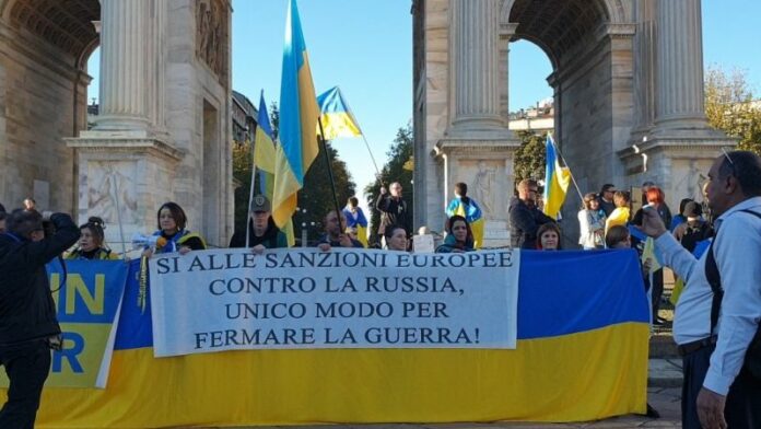 MILANO (ITALPRESS) – Circa cinquemila persone, secondo gli organizzatori, hanno partecipato all’Arco della pace di Milano, a “Slava Ukraini”, la manifestazione per la pace in Ucraina convocata dal Terzo Polo.