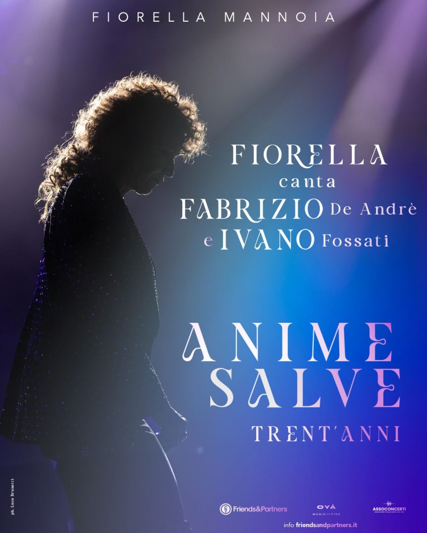 Un viaggio potente e intenso tra i brani più amati di due dei più grandi e influenti cantautori di sempre, entrambi figure cruciali per la carriera e il repertorio di Fiorella, in occasione dei 30 anni dell’album pietra miliare nella storia della musica italiana, ultimo testamento creativo di Faber, realizzato insieme a Fossati e uscito nel 1996. Da alcuni grandi brani dell’album insignito della Targa Tenco, ai successi più amati di De André e Fossati già presenti nel repertorio di Fiorella, fino a nuove inedite versioni di capolavori della discografia dei due cantautori, “Fiorella canta Fabrizio e Ivano: Anime Salve” renderà omaggio all’eredità immortale di maestri che hanno lasciato un segno indelebile nel cuore di intere generazioni.