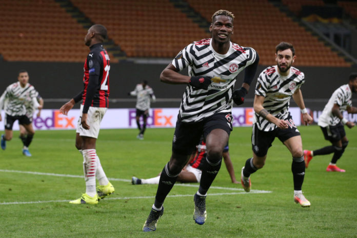 Milano 18/03/2021 - Europa League / Milan-Manchester United / foto Imago/Image Sportnella foto: esultanza gol Paul Pogba