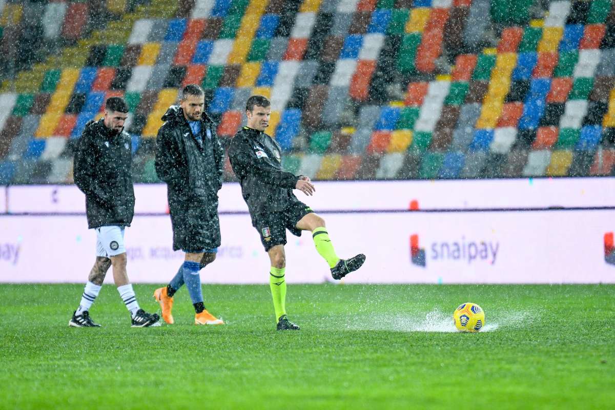Udinese-Atalanta, in programma alle 15, è stata invece rinviata a data da definirsi. Troppa la pioggia caduta alla Dacia Arena che ha reso il campo impraticabile. L’arbitro La Penna ha provato a far rimbalzare la palla per diversi minuti prima dell’incontro in differenti zone del campo, ma senza successo. A quel punto il direttore di gara ha fatto slittare il calcio d’inizio di trenta minuti ma nè il secondo sopralluogo nè il terzo effettuato attorno alle 15.45 sono serviti: nè la situazione meteo nè la tenuta del terreno erano cambiate e a quel punto La Penna ha optato per decretare il rinvio.