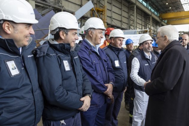 PALERMO (ITALPRESS) – “Complimenti per i risultati straordinari ed eccellenti dovuti alla vostra opera”. Così il presidente della Repubblica Sergio Mattarella parlando con alcuni operai della Fincantieri di Palermo durante la sua visita ai cantieri navali. Mattarella si è fermato con le maestranze anche per qualche foto. “Fincantieri reca grande beneficio e prestigio all’Italia”, ha aggiunto il capo dello Stato.