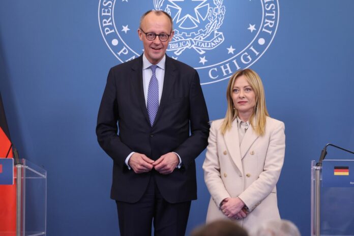 “Sicuramente io e il cancelliere Merz condividiamo un altro elemento fondamentale e cioè che il dibattito principale in Europa non debba essere su che cosa ci aspettiamo che facciano gli altri nei nostri confronti – prosegue -, il nostro principale dibattito deve essere su che cosa noi possiamo fare per noi stessi, che è esattamente quello di cui si occupa ad esempio il nostro documento congiunto sulla competitività, ed è il lavoro che stiamo cercando di fare insieme per rafforzare la capacità strategica, la forza economica e la credibile presenza internazionale dell’Europa. In questo sicuramente Italia e Germania insieme possono fare un lavoro molto importante”.