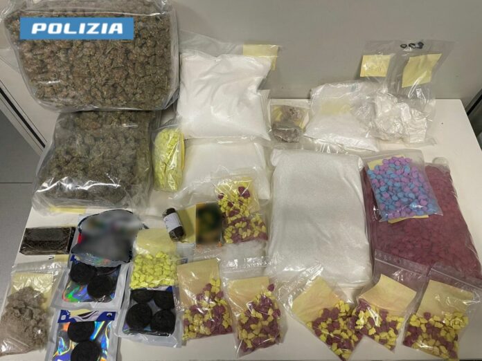 MILANO (ITALPRESS) – La Polizia di Stato ha arrestato a Milano un cittadino italiano di 25 anni per la detenzione ai fini di spaccio di sostanze stupefacenti. Sabato pomeriggio, gli agenti della Squadra Mobile, nel corso di un servizio mirato al contrasto del fenomeno dello spaccio di sostanze stupefacenti, hanno individuato un box auto di uno stabile in via Strambio quale probabile luogo di detenzione di droga. Intorno alle ore 13, hanno notato il 25enne alla guida di un’autovettura che, dopo aver fatto accesso all’interno del box in questione, è uscito pochi minuti dopo con una confezione di cartone. Gli agenti, a quel punto, hanno bloccato l’uomo che spontaneamente ha consegnato loro il pacco appena preso, dove all’interno sono stati trovati quattro confezioni di ketamina per un peso totale di 307 grammi, 184 grammi di marijuana e due confezioni di hashish per un peso totale di 114 grammi. A seguito di perquisizione all’interno del box, i poliziotti hanno sequestrato ulteriori 16 chili di ketamina, 5,2 chili di marijuana, circa 6.000 pasticche di ecstasy per un peso totale di 3 chili, 700 grammi di hashish, 450 grammi di cocaina, 370 grammi di MD, 550 grammi di biscotti al THC, 450 grammi di caramelle contenenti psilocibina e materiale per la pesatura e il confezionamento della droga. All’interno del suo appartamento a Lissone (MB), sono stati rinvenuti e sequestrati oltre 21mila euro in contanti.(ITALPRESS).