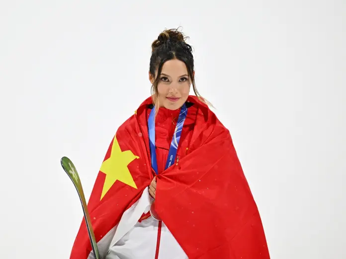 LIVIGNO (XINHUA/ITALPRESS) – La medaglia d’argento cinese Gu Ailing partecipa alla cerimonia di premiazione della gara di freeski Big Air di sci freestyle femminile ai Giochi olimpici invernali di Milano-Cortina 2026 a Livigno il 16 febbraio 2026.