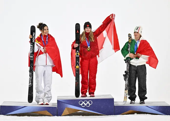 LIVIGNO (XINHUA/ITALPRESS) – La medaglia d’oro canadese Megan Oldham (al centro), la medaglia d’argento cinese Gu Ailing (a sinistra) e la medaglia di bronzo italiana Flora Tabanelli posano per le foto durante la cerimonia di premiazione della gara di freeski Big Air di sci freestyle femminile ai Giochi olimpici invernali di Milano-Cortina 2026 a Livigno il 16 febbraio 2026.