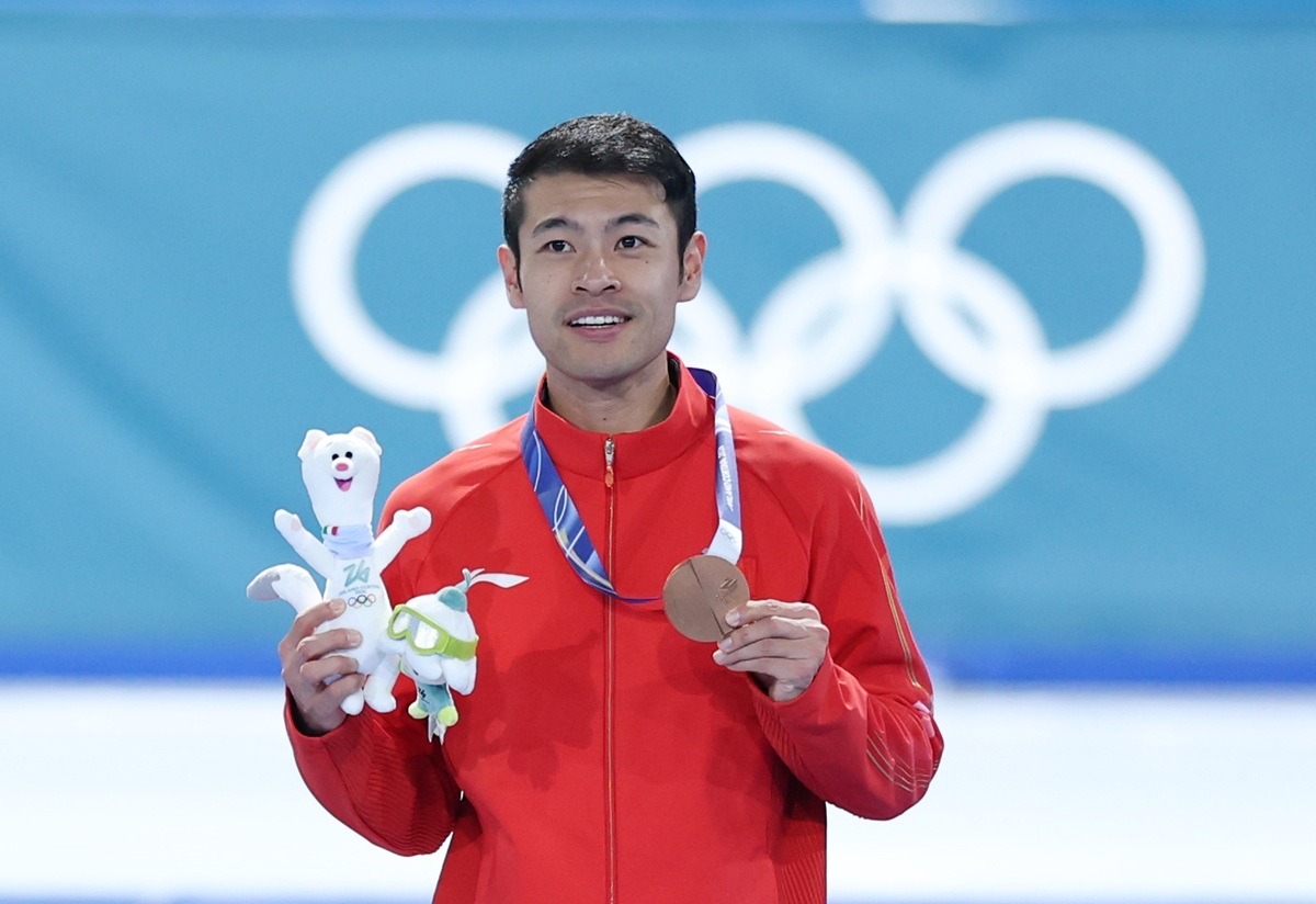 MILANO (XINHUA/ITALPRESS) – L’atleta cinese Ning Zhongyan posa per una foto durante la cerimonia di premiazione dei 1.000 metri di pattinaggio di velocità maschile ai Giochi olimpici invernali di Milano-Cortina 2026 a Milano, l’11 febbraio 2026.