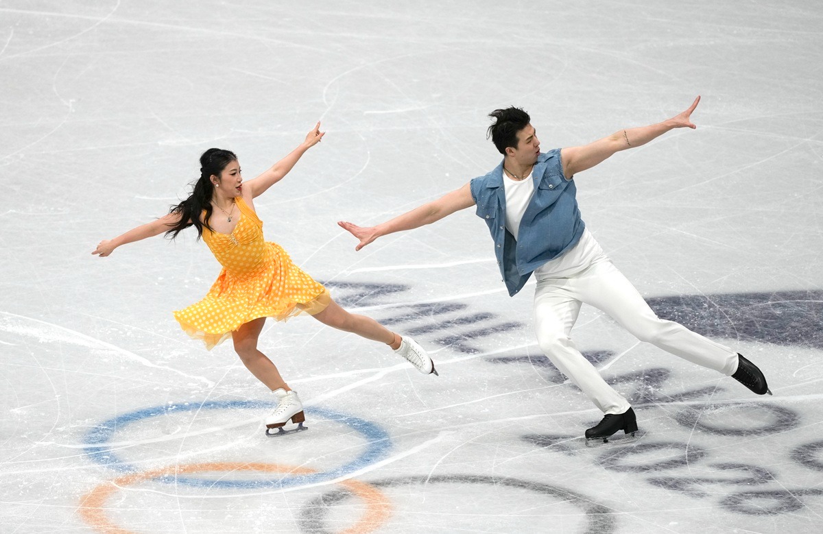 MILANO (XINHUA/ITALPRESS) – Gli atleti cinesi Wang Shiyue (a sinistra) e Liu Xinyu si esibiscono nella danza ritmica su ghiaccio durante la gara a squadre di pattinaggio artistico ai Giochi olimpici invernali di Milano-Cortina 2026 a Milano il 6 febbraio 2026.