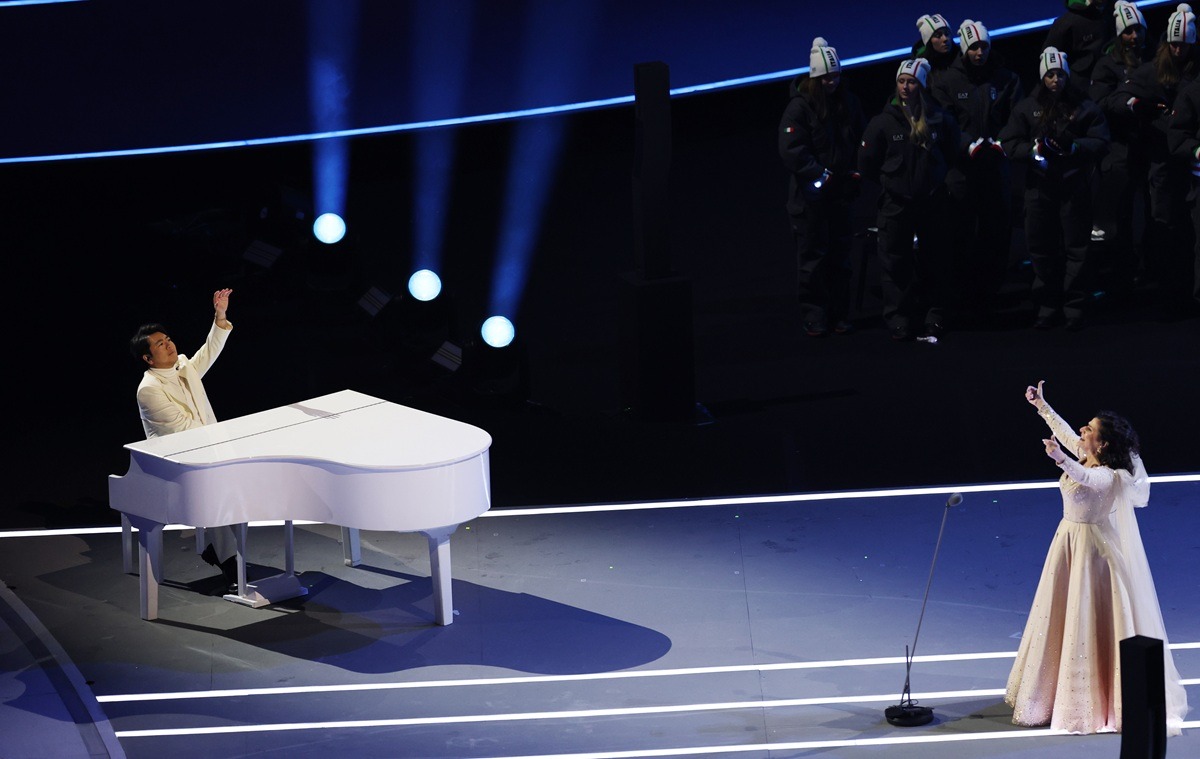 MILANO (XINHUA/ITALPRESS) – Il pianista cinese Lang Lang (a sinistra) e la cantante lirica Cecilia Bartoli si esibiscono durante la cerimonia di apertura dei Giochi olimpici invernali di Milano-Cortina 2026 allo stadio olimpico di San Siro a Milano, il 6 febbraio 2026.