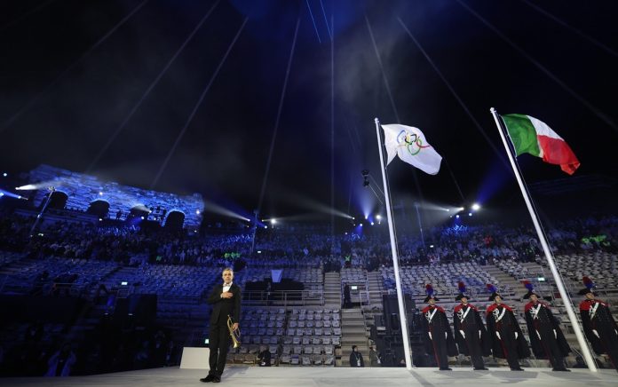 VERONA (XINHUA/ITALPRESS) – Questa foto, scattata il 22 febbraio 2026, mostra la cerimonia di chiusura dei Giochi olimpici invernali di Milano-Cortina 2026 all’Arena di Verona.