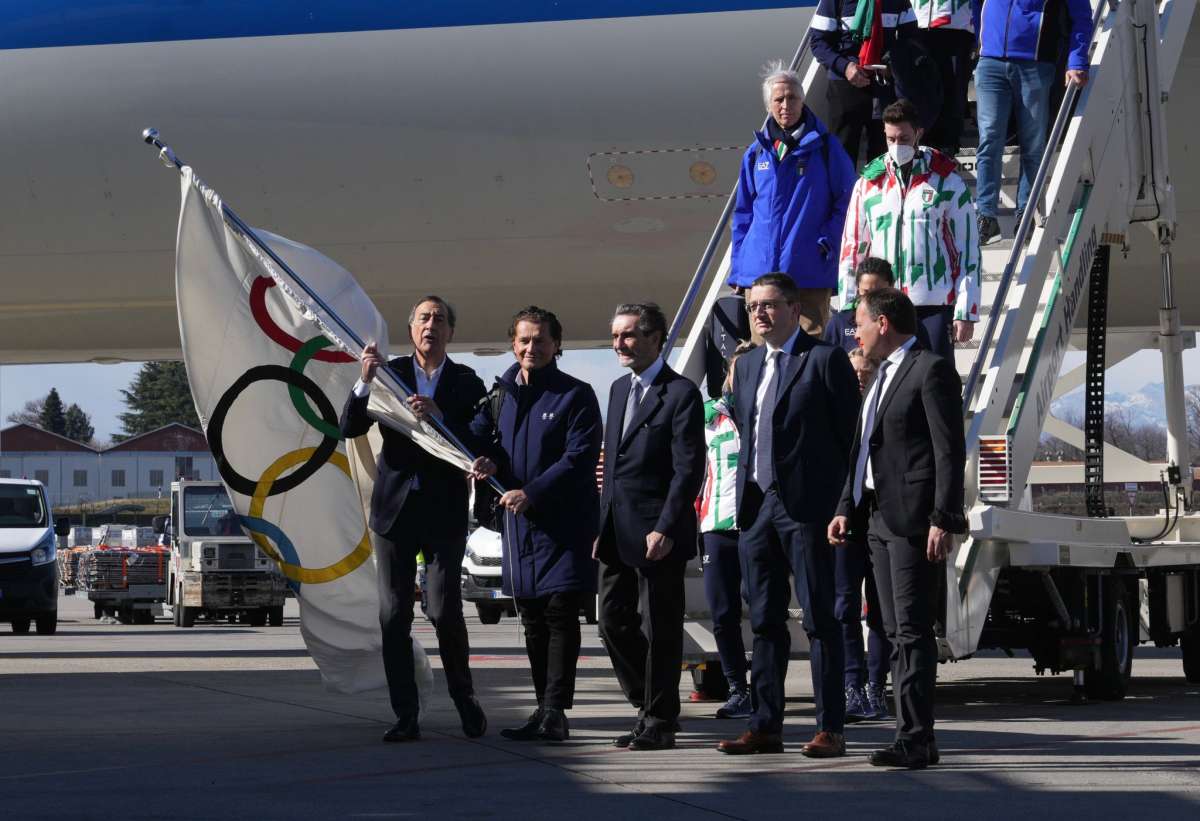 Milano-Cortina, bandiera olimpica sbarca a Malpensa