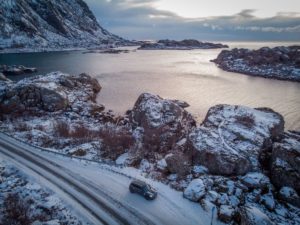 A combattere le rigide temperature esterne, che in questo periodo oscillano tra i -10 °C e i -20 °C, c’è il climatizzatore automatico bizona, impostato costantemente sui 22 °C, unito ai sedili riscaldabili e al parabrezza termico. Gli abitanti delle Isole Lofoten chiamano l’inverno la stagione buia ed infatti le ore di luce al giorno sono circa 3 e per oltre un mese, nel nord della Norvegia, la fredda notte artica assorbe ogni cosa. A farsi luce sulle tortuose strade, quasi totalmente prive di illuminazione, ci sono i fari a LED con Adaptive Light Control, un sistema che regola automaticamente il fascio di luce in base a velocità e traiettoria in curva. Molto presto infatti nella giornata il sole sembra determinato a non sorgere mai più, ma in realtà non è così e, se si è fortunati, si può scorgere qualcosa di incredibile nel mezzo del cielo stellato. E allora si fa una sosta nella speranza di vedere quell’ombra tenue e verdastra che inizia con una timida apparizione all’orizzonte per poi aumentare di intensità attimo dopo attimo, costruendo una danza lunga minuti.