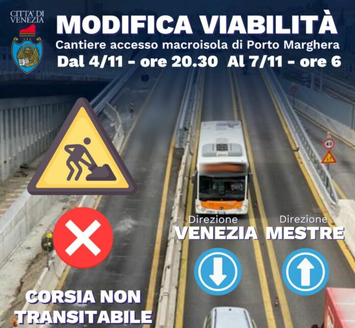 La decisione è stata presa, e sarà formalizzata con un’ordinanza di regolamentazione della circolazione da parte di Veneto Strade, per consentire alla società Rete Ferroviaria Italiana – R.F.I. Spa adeguati spazi di cantiere per l’esecuzione dei lavori di adeguamento funzionale della stazione ferroviaria di Venezia Porto Marghera. Lo scorso fine settimana si sono svolte, senza creare significativi problemi alla circolazione, le prime attività propedeutiche necessarie per dare avvio nei prossimi giorni alle operazioni di vero e proprio scavo.