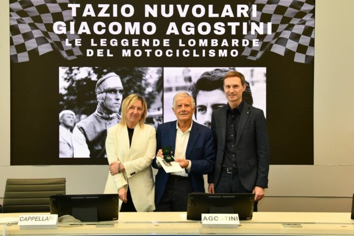 MILANO (ITALPRESS) – “Due grandi lombardi che hanno corso in epoche diverse, ma uniti da un filo: l’amore e la passione per la velocità. Tazio Nuvolari e Giacomo Agostini ancora oggi, in un’epoca in cui smartphone e intelligenza artificiale fanno sembrare tutto facile, per i giovani sono un esempio di tenacia, determinazione, impegno e passione e sono l’espressione dell’amore per i motori e il motorsport dei lombardi, un patrimonio comune che racconta una pagina importante della storia e dell’identità della nostra regione”.