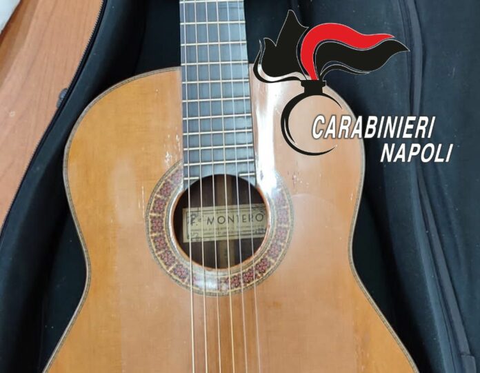 NAPOLI (ITALPRESS) – Una storia che inizia nel 2013 quando un musicista 49enne si ritrovò a dover dire addio ad una preziosa chitarra Antonio Marin Montero, rubata insieme a molti altri strumenti musicali nel suo appartamento di Quarto, in provincia di Napoli. Una sei corde di abete e palissandro per intenditori, dal valore cospicuo. Certamente non un pezzo da rivendere al mercato delle pulci. La vittima ci aveva messo una pietra sopra ma la volontà di pizzicare ancora una volta quelle corde è stata più forte.