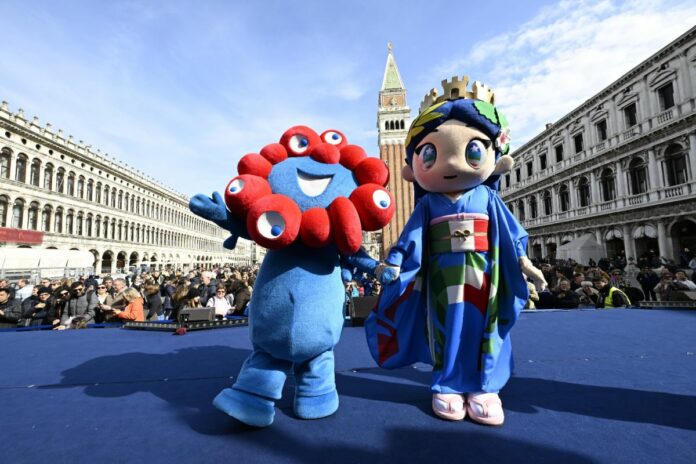 VENEZIA (ITALPRESS) – Tra maschere e colori, Piazza San Marco accoglie due ospiti d’eccezione: Myaku Myaku, mascotte ufficiale di Expo 2025 Osaka e Italia-chan, mascotte ufficiale del Padiglione Italia a Expo 2025 Osaka. Questa mattina sul palco di “Il tempo di Casanova”, i due personaggi hanno affiancato la Sfilata della maschera più bella per salutare il pubblico del Carnevale di Venezia 2025 con un caloroso konnichiwa.