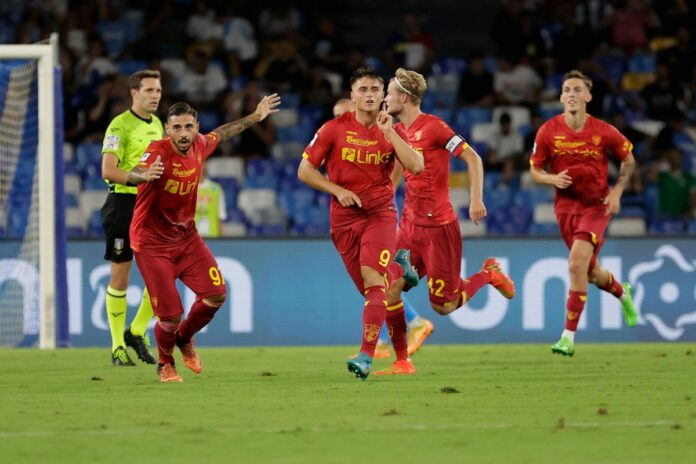 NAPOLI (ITALPRESS) – Un eurogol di Colombo spegne i sogni di gloria di un Napoli, che di fronte al proprio pubblico non va oltre l’1-1 contro un buon Lecce. Per la banda di Spalletti non basta il momentaneo vantaggio di Elmas, dopo un rigore fallito dallo stesso Colombo, e vede così sfumare l’aggancio alla vetta. Il Napoli sale quota 8; secondo punto in campionato per il Lecce.