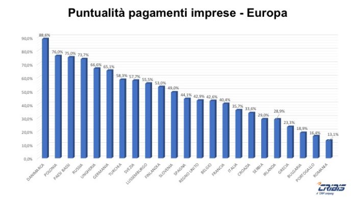 ROMA (ITALPRESS) – Nel 2020 in Italia le imprese che hanno pagato i loro fornitori con oltre 30 giorni di ritardo sono aumentate del 21,9% rispetto al 2019 salendo così al 12,8% totale. Nonostante questo, alla fine dello scorso anno, la puntualità delle aziende italiane è migliorata dal 35 al 35,7% facendo guadagnare al nostro Paese una posizione a livello europeo (dal 17mo al 16mo posto) e due al livello mondiale (dal 25mo al 23mo posto). E’ quanto emerge dallo Studio Pagamenti, aggiornato al 31 dicembre 2020, realizzato da CRIBIS, società del Gruppo CRIF specializzata nella business information, che ha analizzato le abitudini di pagamento delle imprese in 35 Paesi del mondo (23 dei quali in Europa) che rappresentano circa il 90% del PIL mondiale.