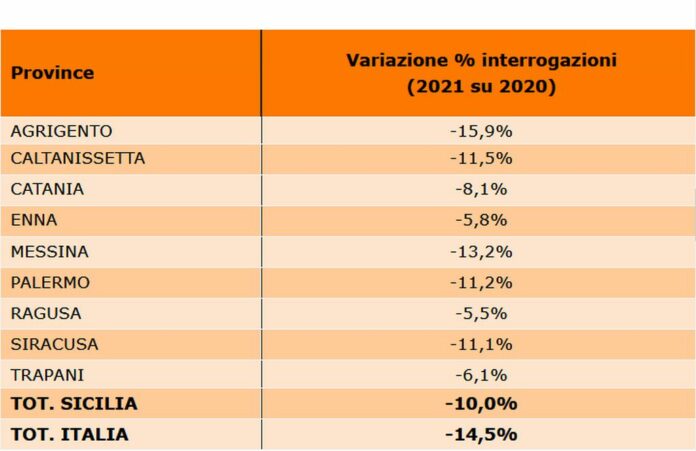 A livello provinciale, come al livello regionale, le richieste hanno registrato una diminuzione generalizzata, con una flessione meno accentuata a Ragusa, Enna e Trapani, rispettivamente pari a -5,5%, -5,8% e -6,1%, seguite da Catania, con -8,1%. Chiudono la classifica regionale le provincie di Messina (-13,2%) e Agrigento (-15,9%).